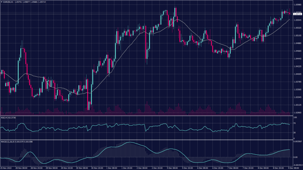 مقابل الدولار، ارتفع اليورو بنسبة 0.5٪ تقريباً خلال الليل واتجه نحو أعلى مستوى له في ستة أشهر في بداية الأسبوع. وكان آخر ارتفاع بنسبة 0.23٪ عند 1.0579 دولار وهو في طريقه لتحقيق مكاسب للأسبوع الثالث على التوالي. يصدر البنك المركزي الأوروبي (ECB) قراراته المتعلقة بالسياسة النقدية الأسبوع المقبل، مع ترقب الأسواق باهتمام للحصول على إرشادات بشأن توقعات عام 2023.