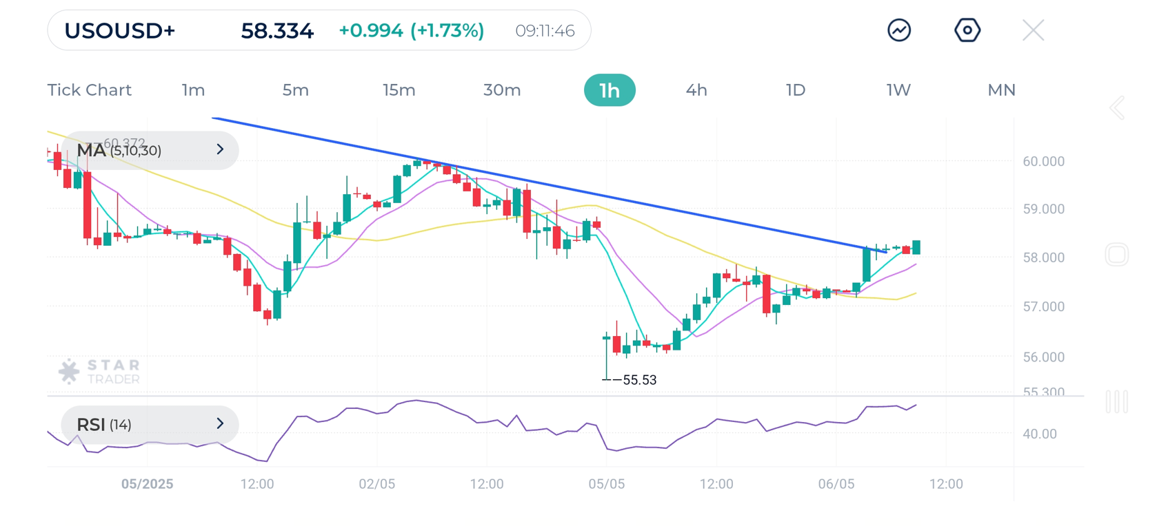 Oil (USOUSD) 1H Chart