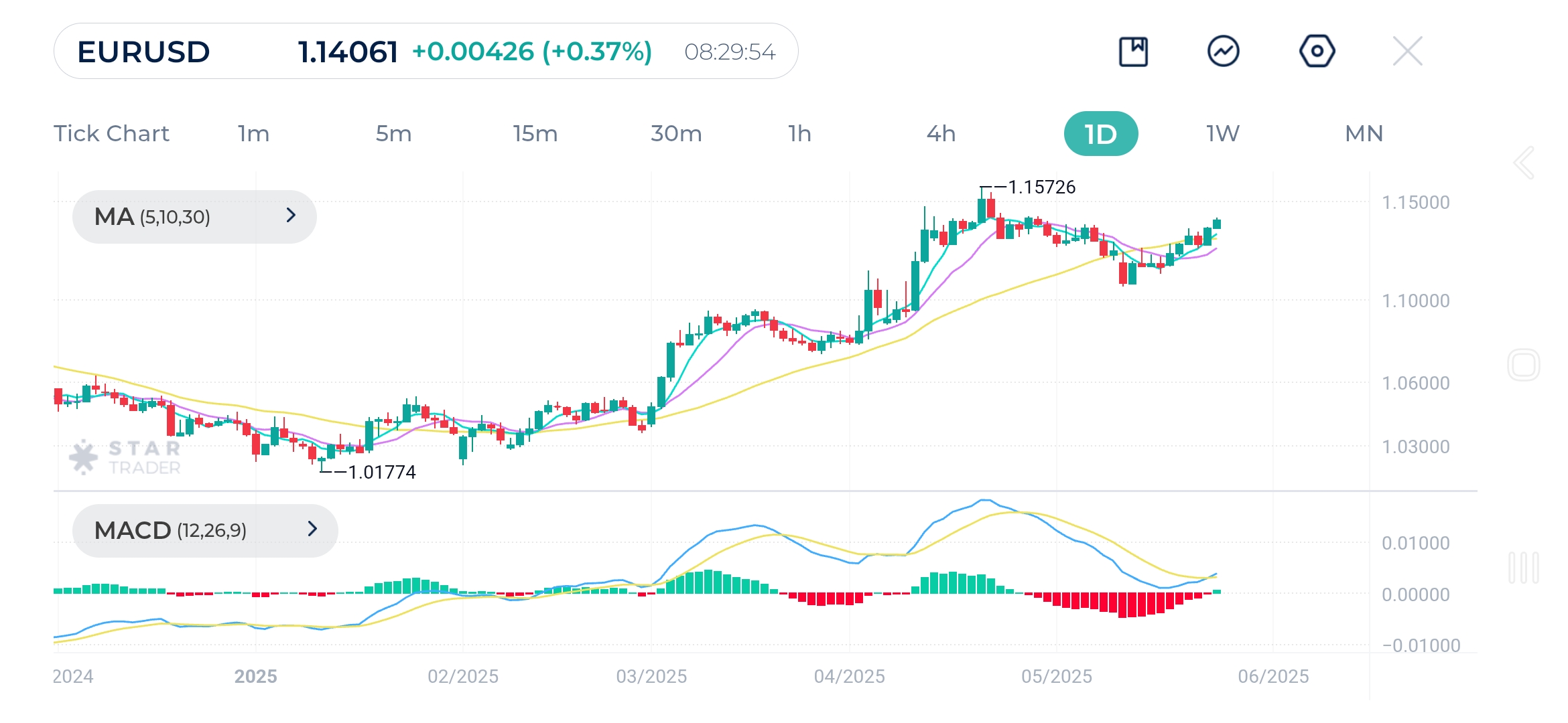 Daily Technical Analysis: The US Dollar Continues its Decline, EURUSD Breaks Above 1.1400