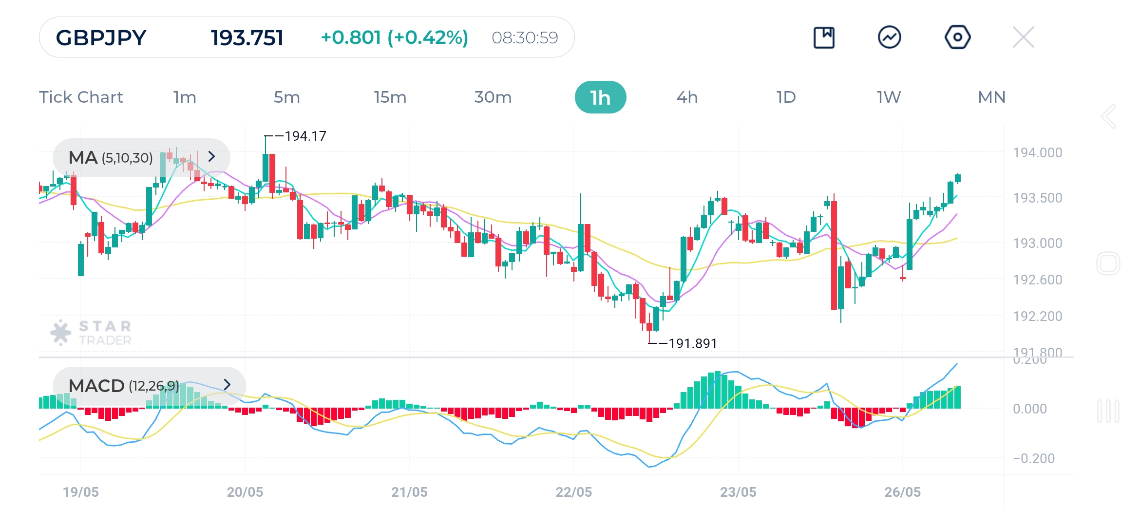 GBPJPY bounced from its monthly low at the 192.00 level and is now experiencing a sharp rise towards 194.00 levels. Short-term and mid-term moving averages MA (5,10,30) are pointing upward confirming the bullish bias.