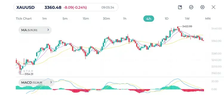 Gold is correcting downward from its recent high $3,453. The short term trend is turning bearish after a strong bullish wave. Lower highs and lower lows are starting to form on the 4H chart. And a bearish crossover is seen on MACD.