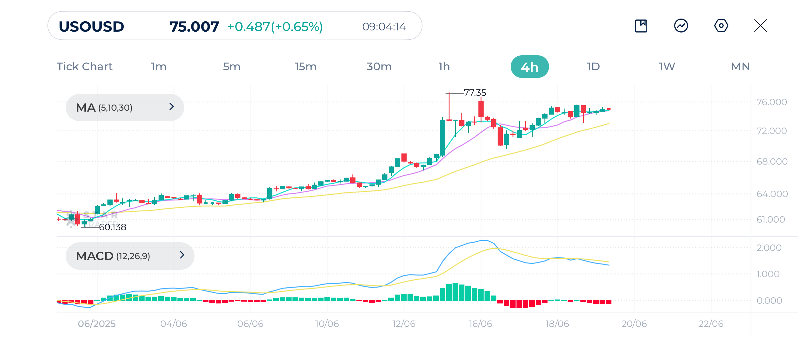 The overview of USOUSD is still bullish, but momentum is weakening. A break above $77.35 would resume the rally. If it breaks below $73.00, we could see a deeper pullback.