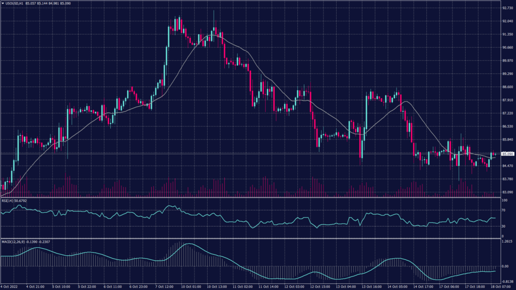 The WTI chart shows a downward trend on the daily chart while trading right above the support at 86.60. However, the technical indicators show a chance of fluctuations between 85.60 and 87.40 before deciding the actual trend. The hourly chart on the other hand is moving below the 20 and 50 periods moving average, indicating a high possibility of a negative trend continuation.