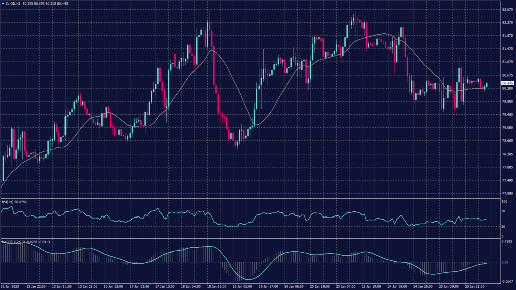 Technically, crude oil is trading under bearish pressure that is accumulating above the $80 mark. The chart is expected to show further decline as the hourly chart shows slowing buying pressure. The technical indicators show divergence and a tendency for further decline.