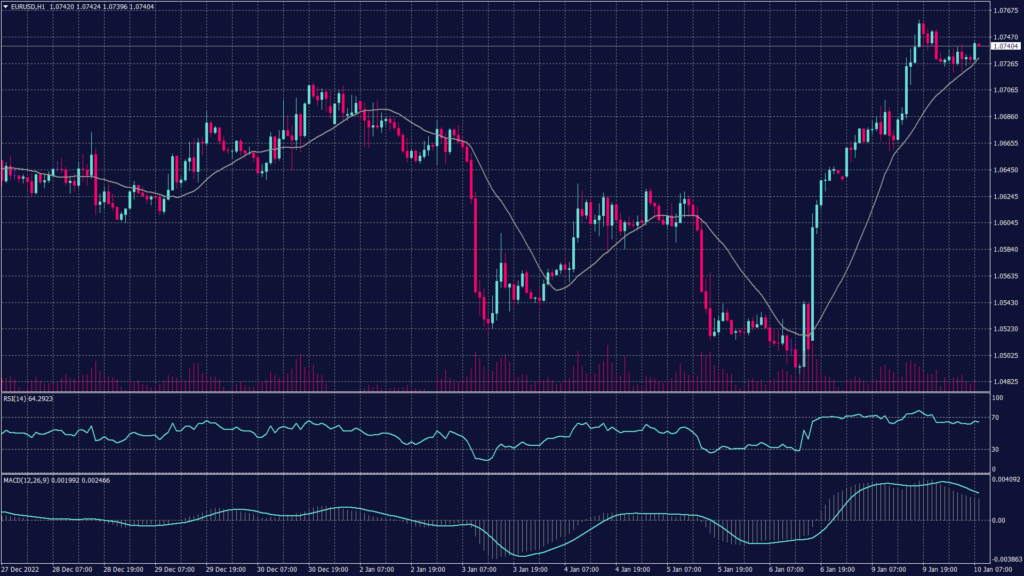 The hourly chart shows slight support above 1.0720 while the buying force remains solid. However, due to the rapid rise, the chart does not show strong technical support.