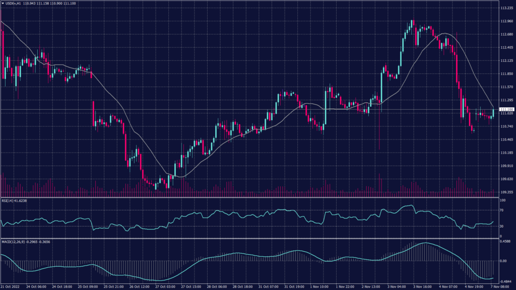 The hourly chart shows resistance at 111.08 and also shows the index heading towards 110.70. Meanwhile, technical indicators show slight divergence and possibility to rebound if the index gained momentum before breaking to 110.30.