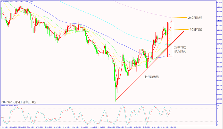 日级别线图,近期形成盘涨,短中均线多方排列,有望延续涨势。