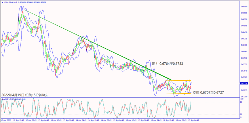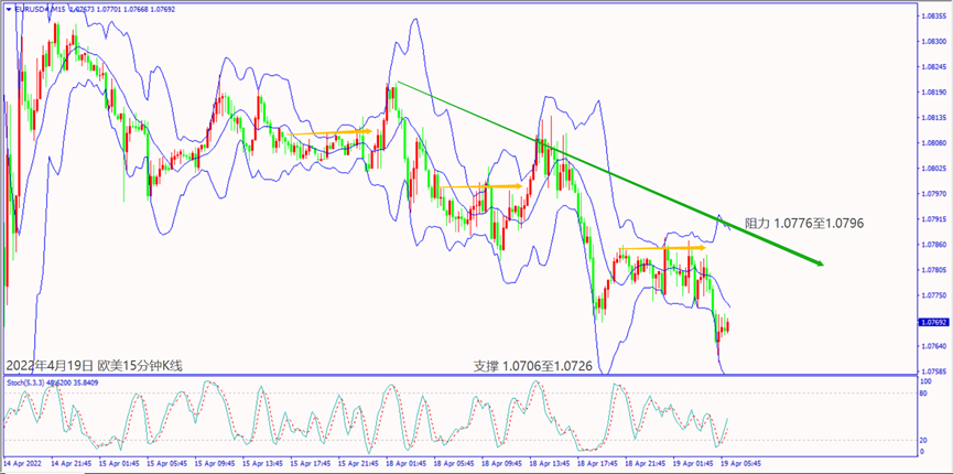 昨天(18日)俄罗斯对乌东采取新攻势,美国国防部官员透露对乌克兰运送军援,早上亚洲市场回补美元带动指数上涨约20个点。今天(19日)早上澳洲联储会议纪要称澳大利亚的财务状况仍然非常宽松,造成澳美从早上高点转空下跌。预期今天世界经济展望报告对战争冲击经济示警,可能造成欧美和镑美扩大跌势。