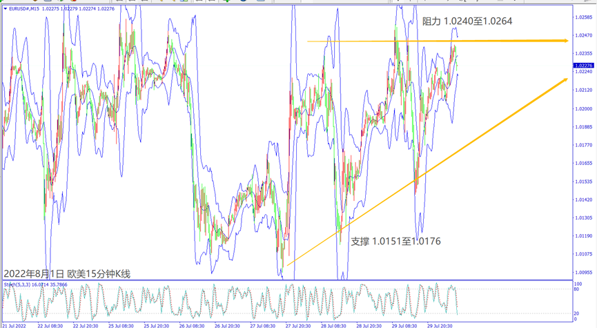 昨天(31日)纽约市长对猴痘疫情宣布紧急情况,今天(1日)亚洲市场抛售美元造成指数下跌约40个点。预期今天欧洲公布制造业和失业率不佳,可能造成欧美和镑美下跌。预期今天美国公布经济数据利好,有望带动美元指数上涨。
