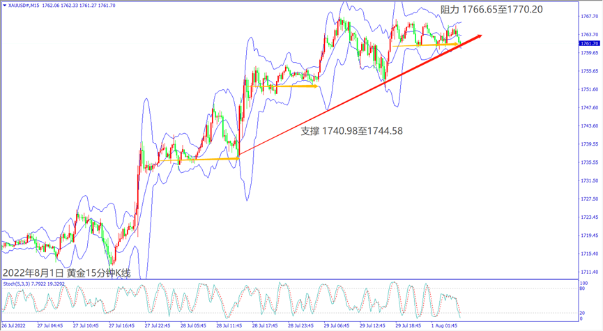 上周五(29日)受到美元指数震荡影响,黄金价格介于1760美元附近震荡。预期今天(1日)美国公布经济数据大都利好,一旦带动美元和美股齐涨,黄金价格若跌破小时布林带下轨线1760美元,建议可短空操作。