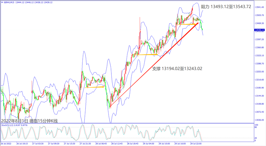 上周五(29日)欧美公布经济数据利好,带动欧美股指皆涨逾1%。预期今天(1日)欧元区公布制造业数据大都不佳,德指若冲不过60日均线13,502,建议可短空操作。预期今天美国公布经济数据大都利好,道琼斯若突破小时布林带上轨线32,897,建议可短多操作。
