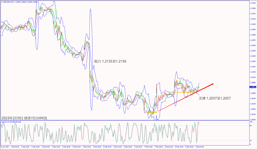 昨天(8日)日本首相岸田文雄表示下任日本央行行长的选择关乎基本经济政策,暗指维持宽松政策利淡日元,美日若守住5日均线131.52,建议可短多操作。预期今天(9日)德国公布CPI下降,欧美冲不过5日均线1.0735,建议可短空操作。预期今天英国央行行长贝利重申加息抑制通胀,镑美若守住小时布林带下轨线1.2056,建议可短多操作。