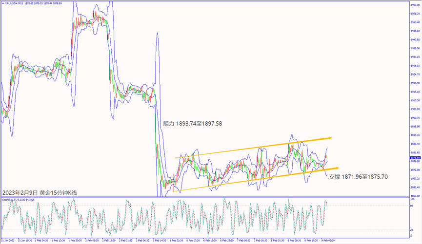 周三(8日)美联储主席鲍威尔暗指加息趋缓利淡美元,亚洲和欧洲市场回补黄金带动价格上涨约15美元。晚间德国总理表示欧洲通胀下降利淡欧元,以及美联储威廉姆斯表示通胀可能会更持久利好美元上涨,也让黄金价格反转跌约17美元,尾盘反弹至1875美元附近震荡。