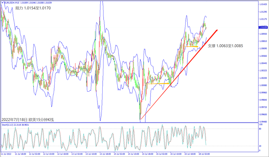 上周五(15日)欧元区公布经济数据利好,以及欧洲央行官员称可能在7月加息25个基点,9月加息50个基点,利好欧美和镑美皆涨超65个点。晚间美国公布经济数据好坏参半,美联储多位官员重申预测加息75个基点,造成美元指数扩大下跌约80个点,拖累美日和美加皆跌逾80个点,也让欧美、镑美、澳美和纽美皆反转涨超80个点。