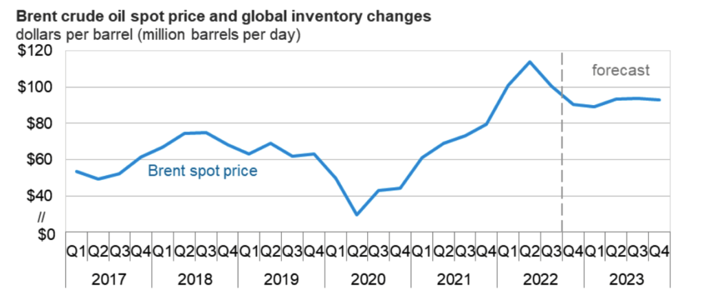 องค์กรข้อมูลด้านพลังงาน (EIA) ของสหรัฐ คาดการณ์ว่า ราคาน้ำมัน Brent จะกลับมาอยู่เหนือระดับ 90 ดอลลาห์ต่อบาร์เรล ก่อนไตรมาสที่ 2 ของปีหน้า อันเนื่องมาจากปริมาณน้ำมันคงคลังที่มีแนวดน้มลดลงในช่วงเวลาดังกล่าว
