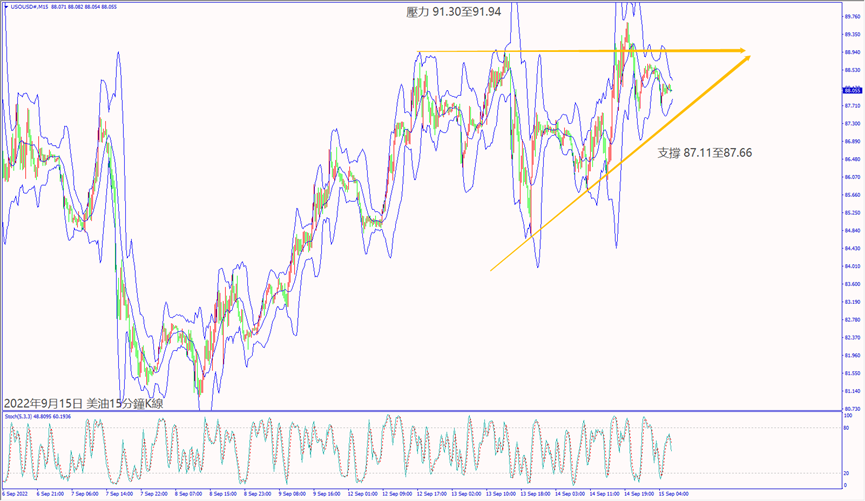 昨天(14日)歐盟官員表示正在討論天然氣價格上限,以及提出中小企業的救濟計劃,利好德指從當日低點上漲約150個點。歐盟經濟學家表示持續加息抑制通脹,以及惠譽機構預測歐元區將在今年晚些時候進入衰退,造成德指反轉大跌逾250點,拖累道瓊斯和納指皆下跌約1%。 IEA月度原油報告調降2022年石油需求,一度造成美油價格回測86.00關口。俄羅斯大使表示石油價格上限無法抑制國際原油報價,市場扎空買盤帶動美油價格逆勢上漲逾4%。美國公佈EIA原油庫存和精煉油庫存高於市場預期,造成美油價格回落至88美元附近整理。