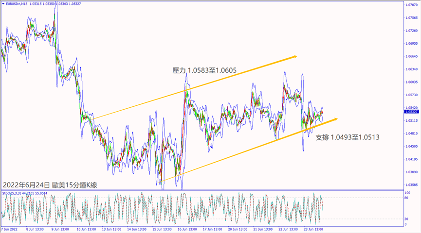 昨天(23日)歐元區公佈製造業數據不佳,以及德國經濟部長對能源問題示警,造成歐美和鎊美跳水大跌約95個點,推升美元指數衝高至104.40附近整理。晚間美國公佈經濟數據利淡造成美元指數反轉下跌約70個點,拖累美日擴大下跌約200個點,推升鎊美、澳美和紐美皆漲逾60個點。美聯儲主席鮑威爾在眾議院進行半年度貨幣報告,再度重申經濟非常強勁和加息抑制通脹,帶動美元指數漲至104.20附近整理,也讓非美貨幣全部回調。