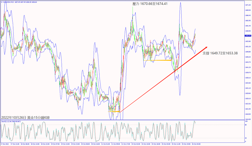 週二(25日)據CME美聯儲觀察預測美聯儲11月加息75個基點的概率為95.5%利好美元指數上漲,也讓黃金價格從早上高點下跌約15美元。晚間美國公佈經濟數據利淡,美元指數和美債收益率齊跌,帶動黃金價格從當日低點上漲近25美元。黃金價格衝高後觸及前日起跌阻力,尾盤回落至1655美元附近整理。