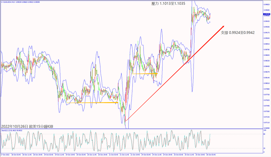 今天(26日)據CME美聯儲觀察預測美聯儲11月加息75個基點的概率為93.7%,亞洲市場回補美元帶動指數上漲約30個點。今天澳大利亞公佈第三季度CPI年率高於市場預期,一度帶動澳美上漲約25個點。預期今天加拿大利率決定宣布加息利好加元,可能造成美加下跌。