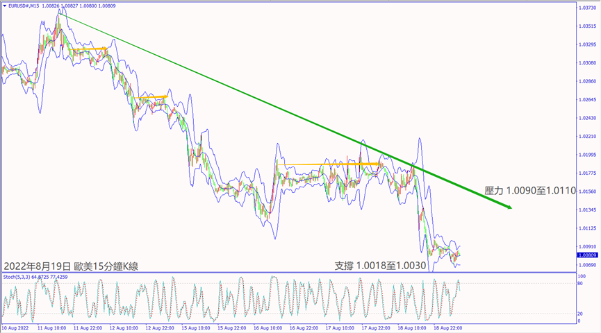 昨天(18日)歐洲央行官員稱經濟增長放緩,造成歐美和鎊美下跌約50個點。歐元區公佈CPI數據如市場預期但能高居8.9%,市場料未來歐洲央行仍持續加息,帶動歐美、鎊美、澳美和紐美皆漲超40個點,也讓美元指數出現40個點震盪。晚間美國公佈經濟數據利好,以及多位美聯儲官員預期加息帶動美元指數逆勢大漲逾百點,推升美日和美加漲超110個點,造成歐美和鎊美跌逾115個點。