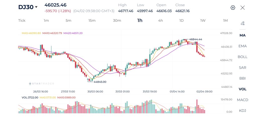 Giá hiện đang hình thành các đỉnh thấp dần và đáy thấp dần, xác nhận sự chuyển dịch của động lượng từ tăng sang điều chỉnh. Mức hỗ trợ tức thời nằm gần vùng 45,800, và nếu mức này bị phá vỡ, đà giảm có thể mở rộng về phía 45,250. Trong khi đó, bất kỳ nỗ lực phục hồi nào cũng có khả năng đối mặt với kháng cự mạnh quanh vùng 46,300–46,500, nơi mà các mức hỗ trợ trước đây hiện đã chuyển thành kháng cự.